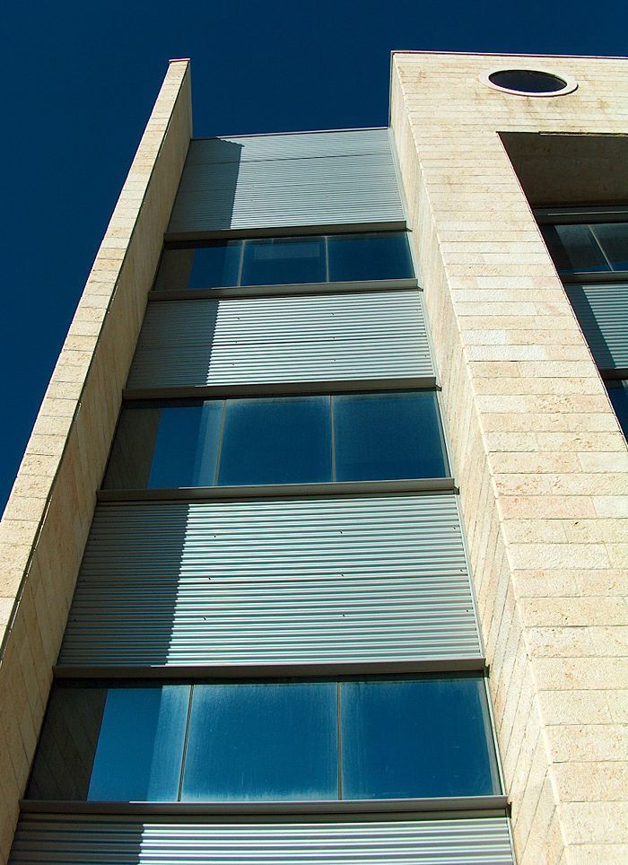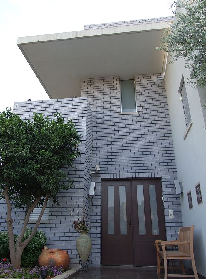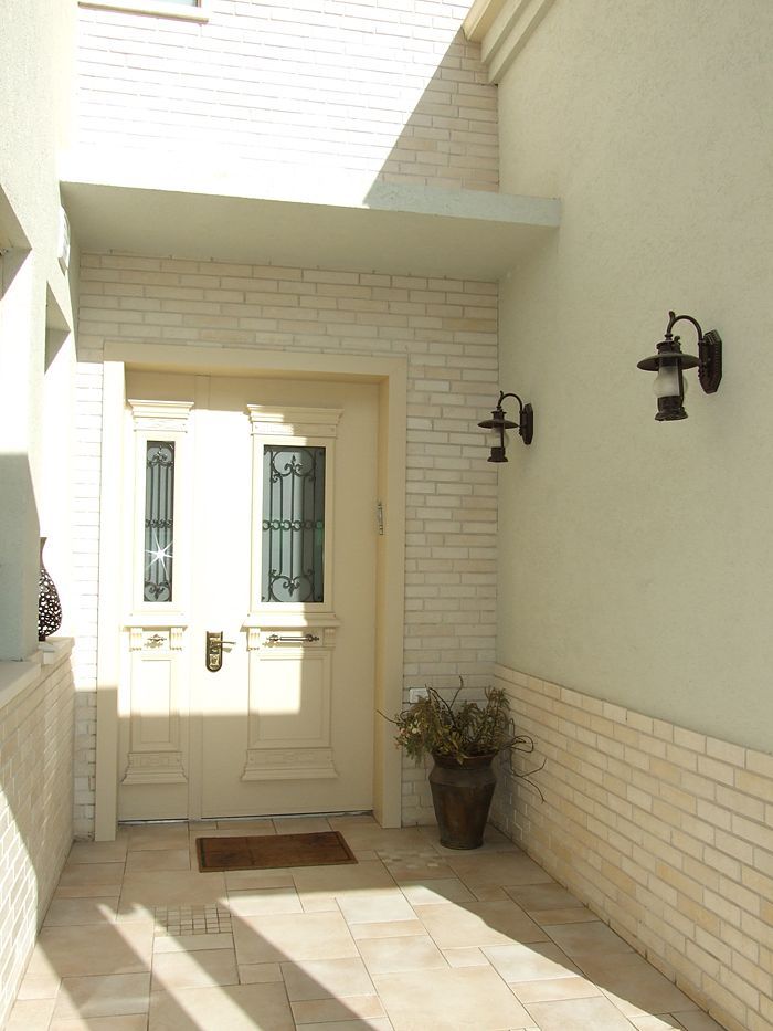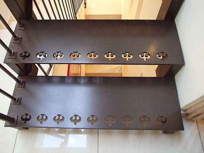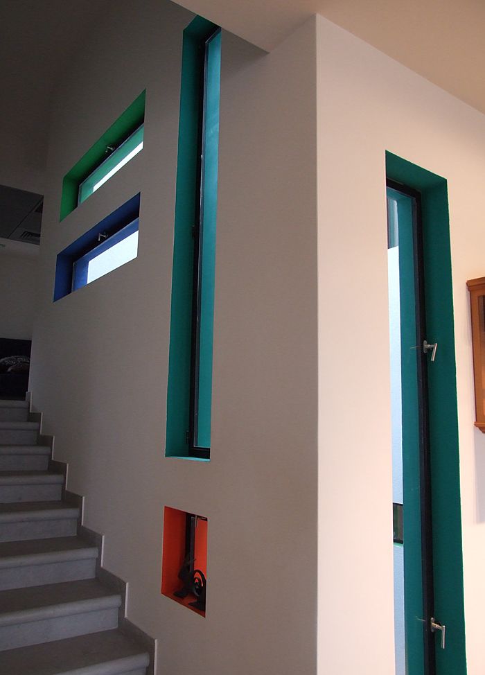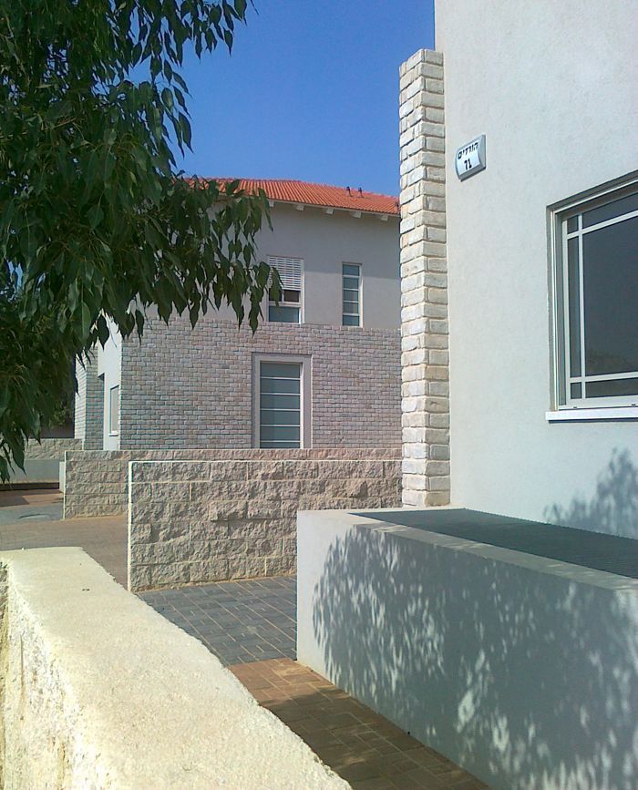 Buttonהשתמשנו בלבני תחרה להכנסת אור מסונן למדרגות הבית.