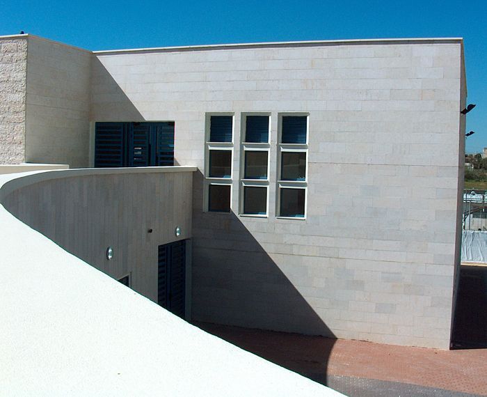 Buttonמעקות בנויים בגוונים שונים ליצירת שכבות של תנועה