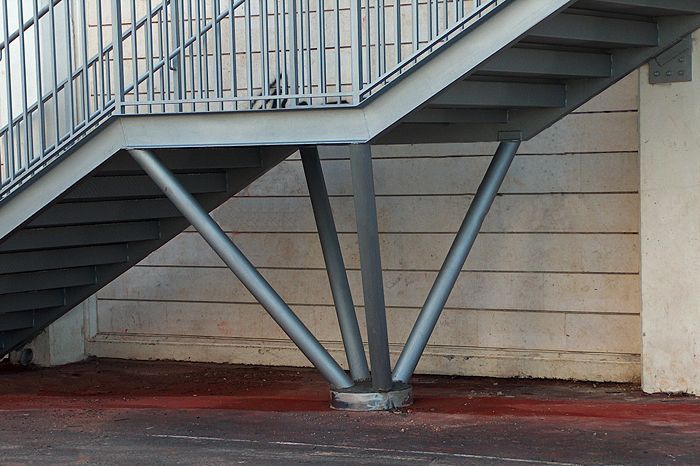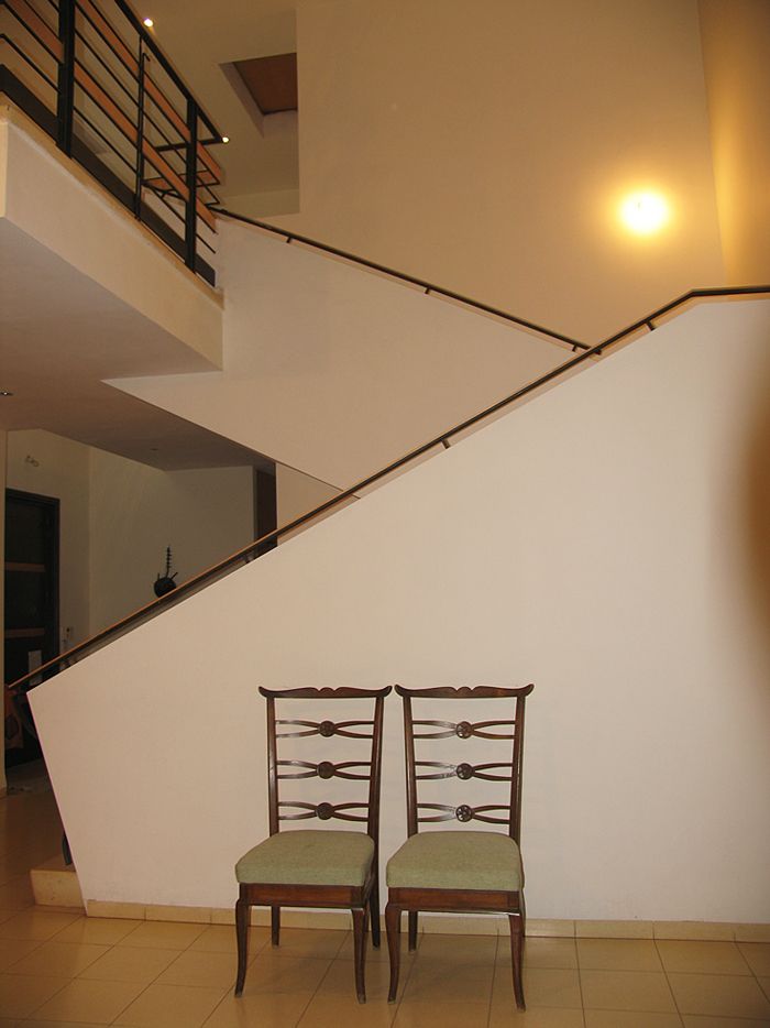 Buttonמשחק של מסה ושקיפות במהלך מדרגות. בפוסדט ממוקמת ספרית הבית